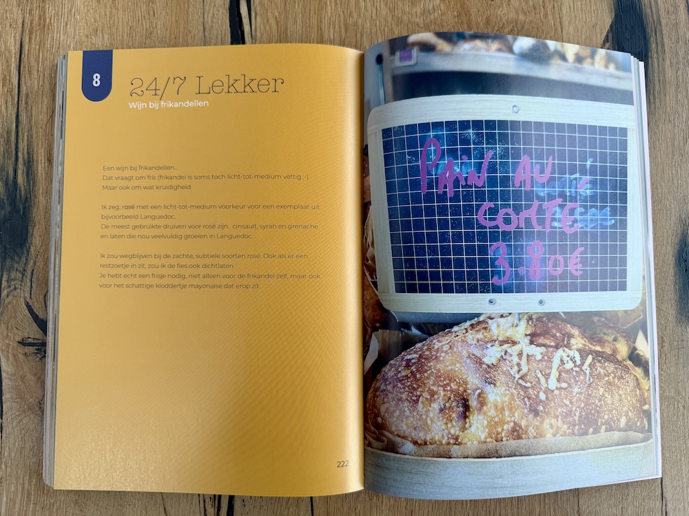 Van frikandel tot oester, alles overgoten met het juiste wijntje. Wij bladerden er doorheen en renden meteen naar de winkel voor dat broodje ham, pesto, burrata.