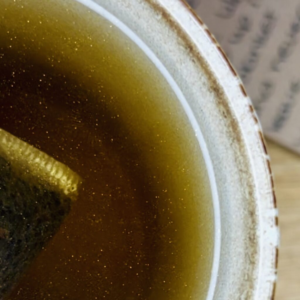 Een thee met een gouden randje. Om precies te zijn met een gouden glittertje. Eetbare glitters.