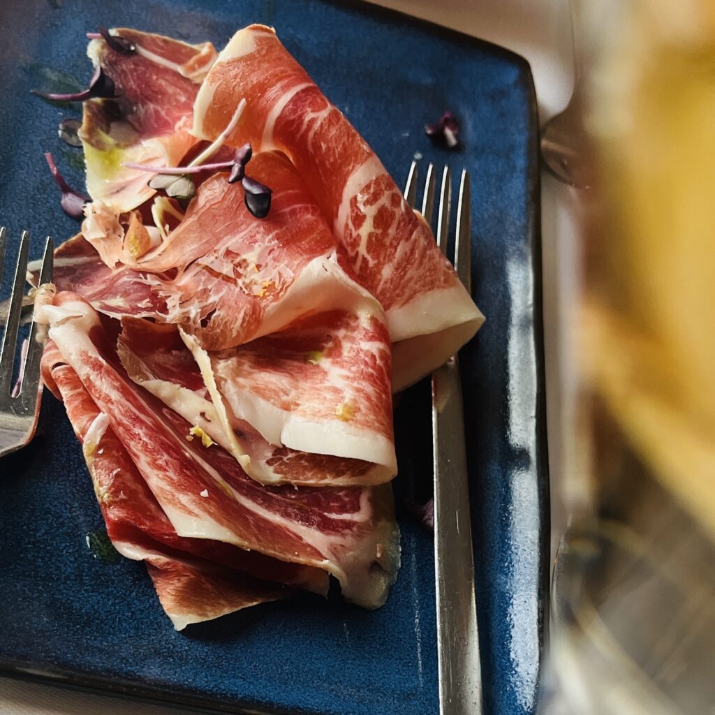 Vraag of ze de Serranoham wat dikker willen snijden.